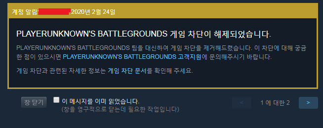 2월 24일 계정차단이 해제되었습니다